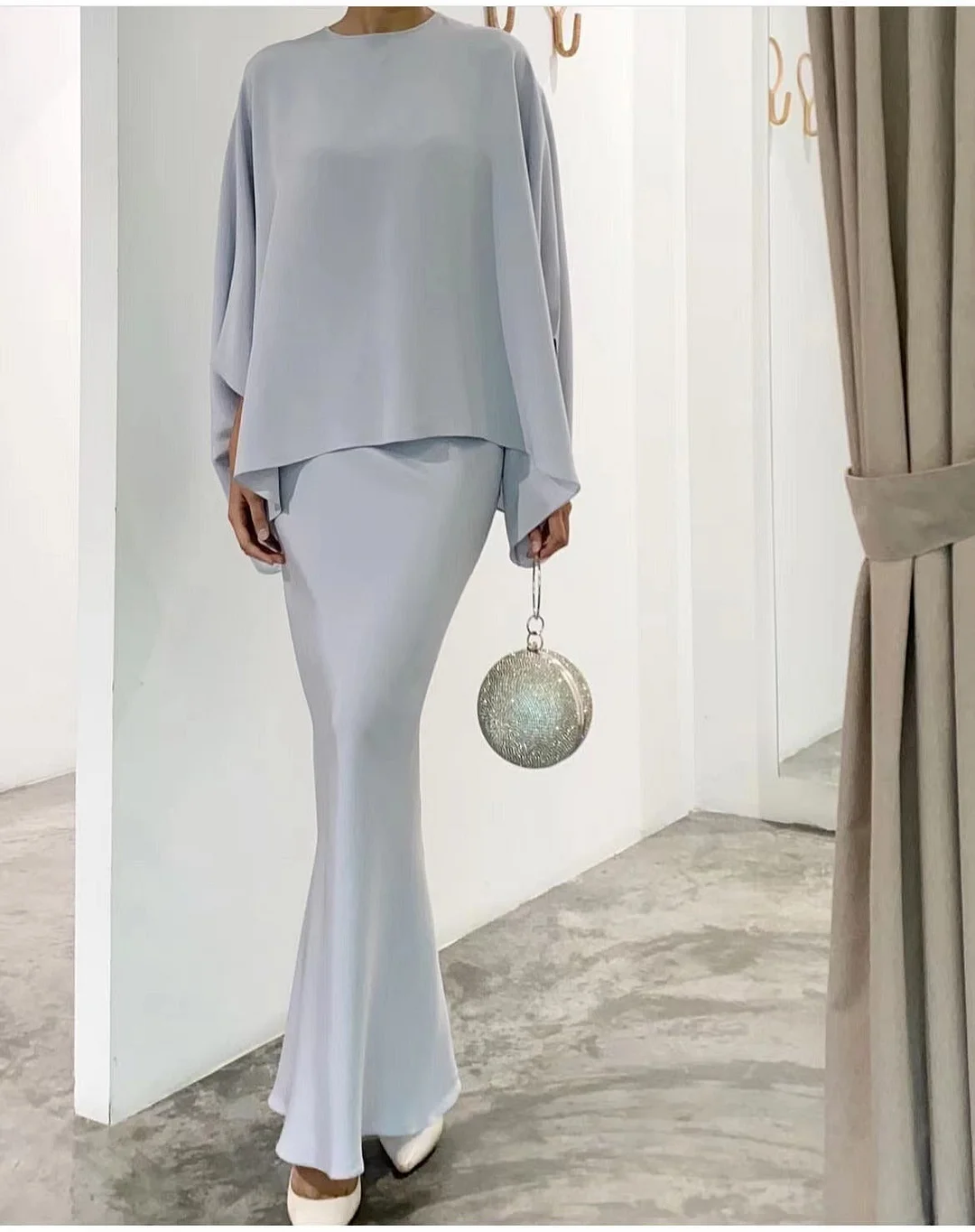⏳ TYLKO TERAZ! Zestaw: Top z dekoltem okrągłym + spódnica fishtail - Luźny krój & rękawy nietoperz