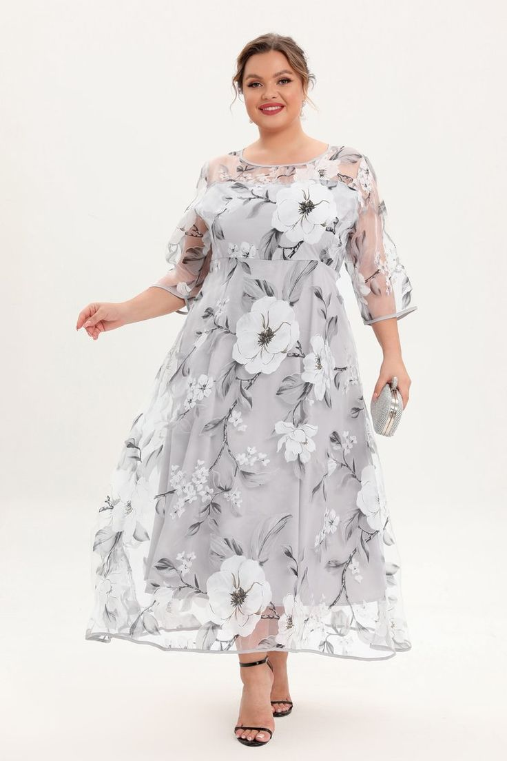 ✨ Elegant Plus Size Mother of the Bride Dress - Grey Floral Lace Overlay & Flowy A-Line Maxi ✨