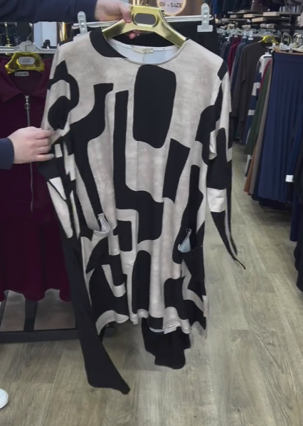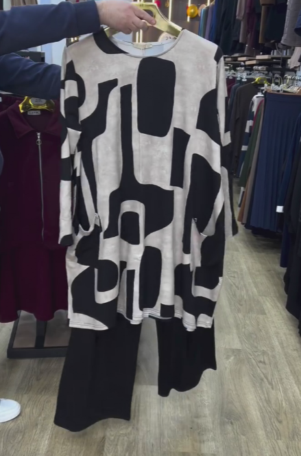 Luźny top z abstrakcyjnym nadrukiem w połączeniu ze spodniami o szerokich nogawkach tworzy swobodny i zrelaksowany look.139,00 zł PLN405,00 zł PLNDescribe your product