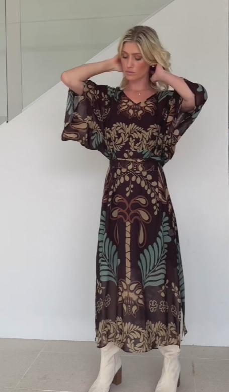 Długa sukienka z szyfonu z dekoltem w serek i nadrukiem w stylu retro, wiązana w talii139,00 zł PLN405,00 zł PLNDescribe your product