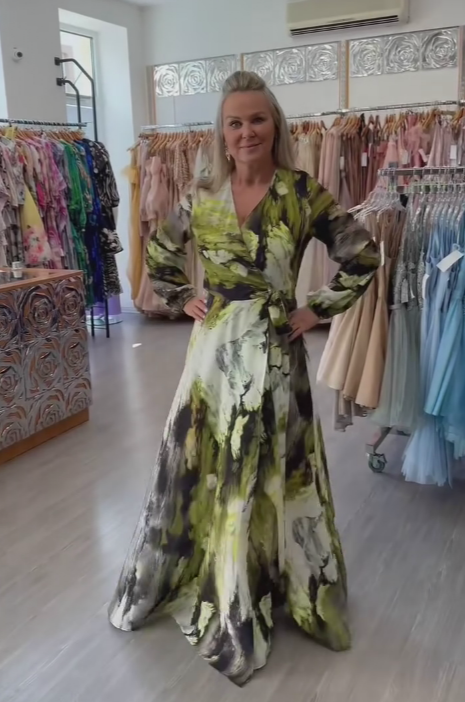 Suknia wieczorowa z abstrakcyjnym nadrukiem i dekoltem w serek, wiązana na szyi139,00 zł PLN405,00 zł PLNDescribe your product