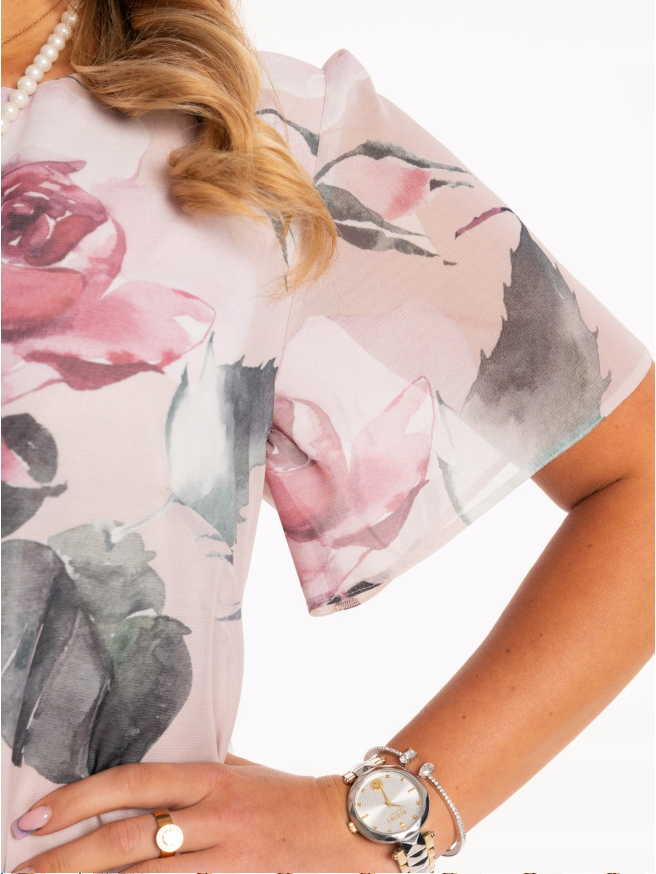 ✨PROMOCJA! Romantyczna sukienka w akwarelowe kwiaty z okrągłym dekoltem -30% TYLKO DZIŚ!