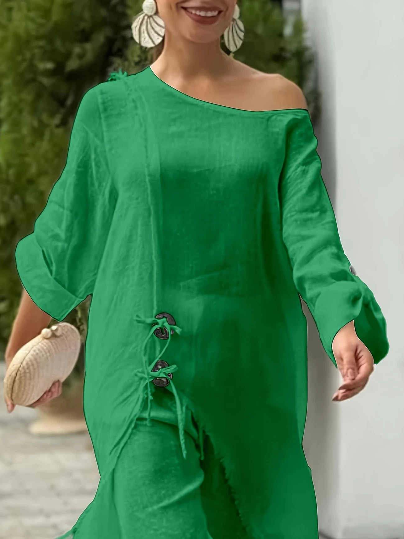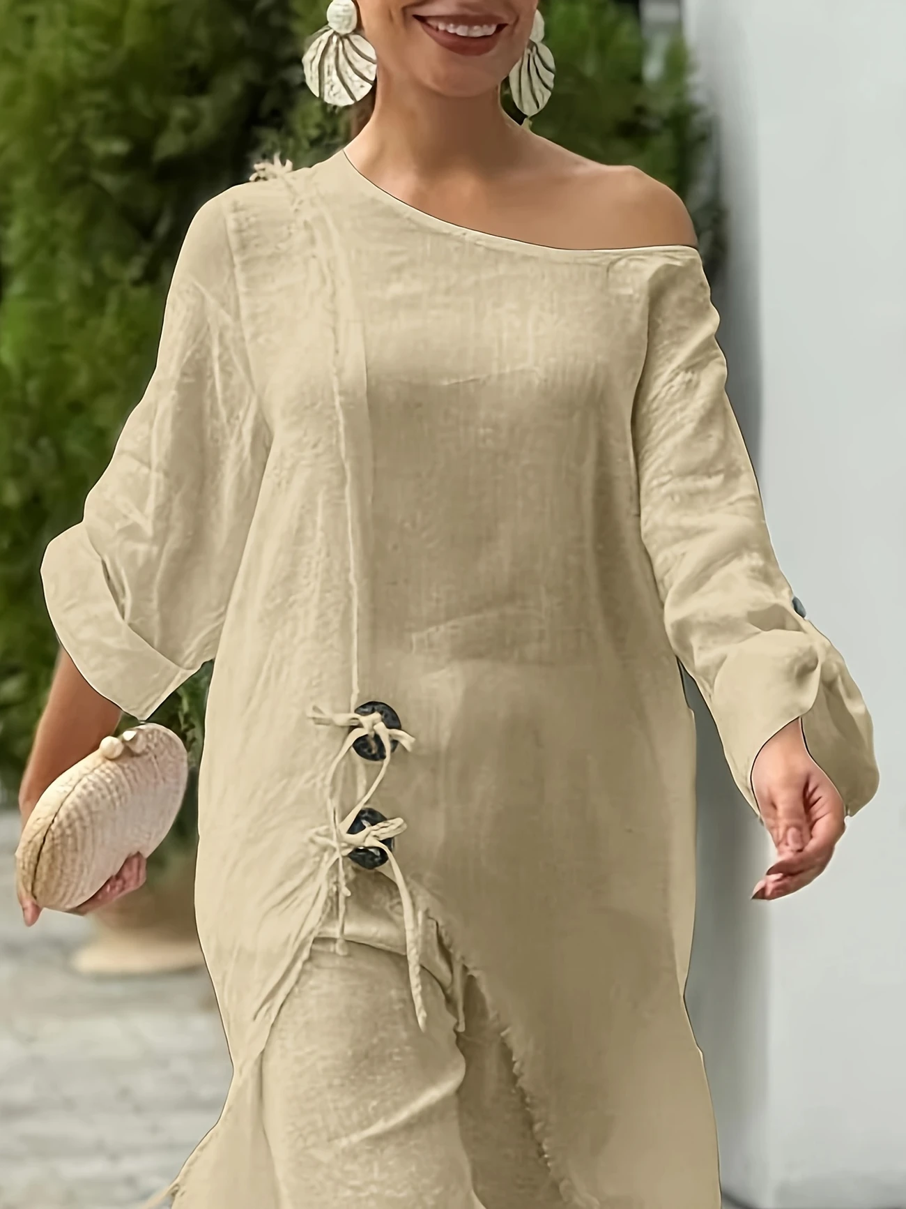 💃 HIT SEZONU! Zestaw damski: oversizowa bluzka z długim rękawem & luźne spodnie – styl boho! -30% TYLKO DZIŚ!