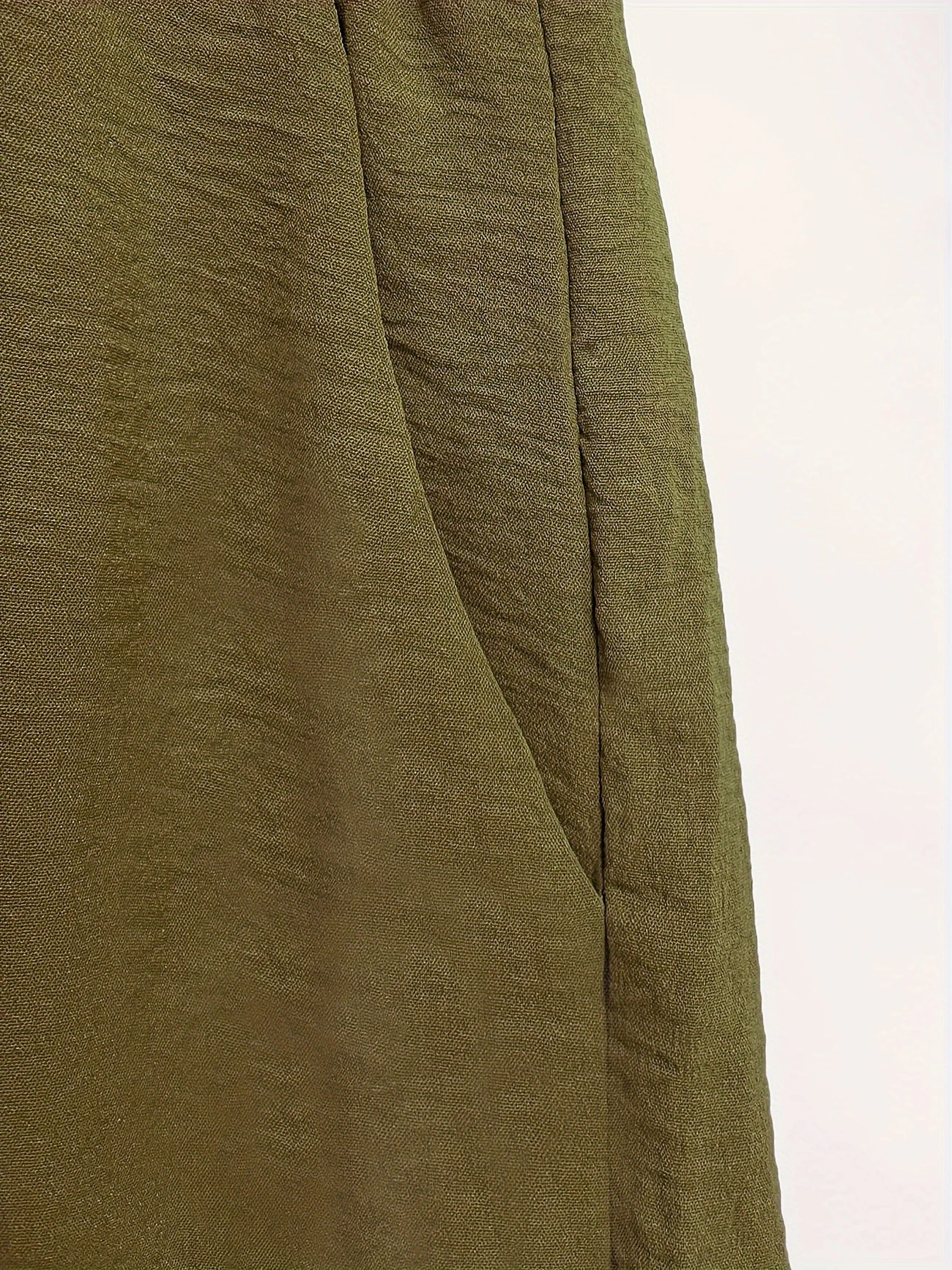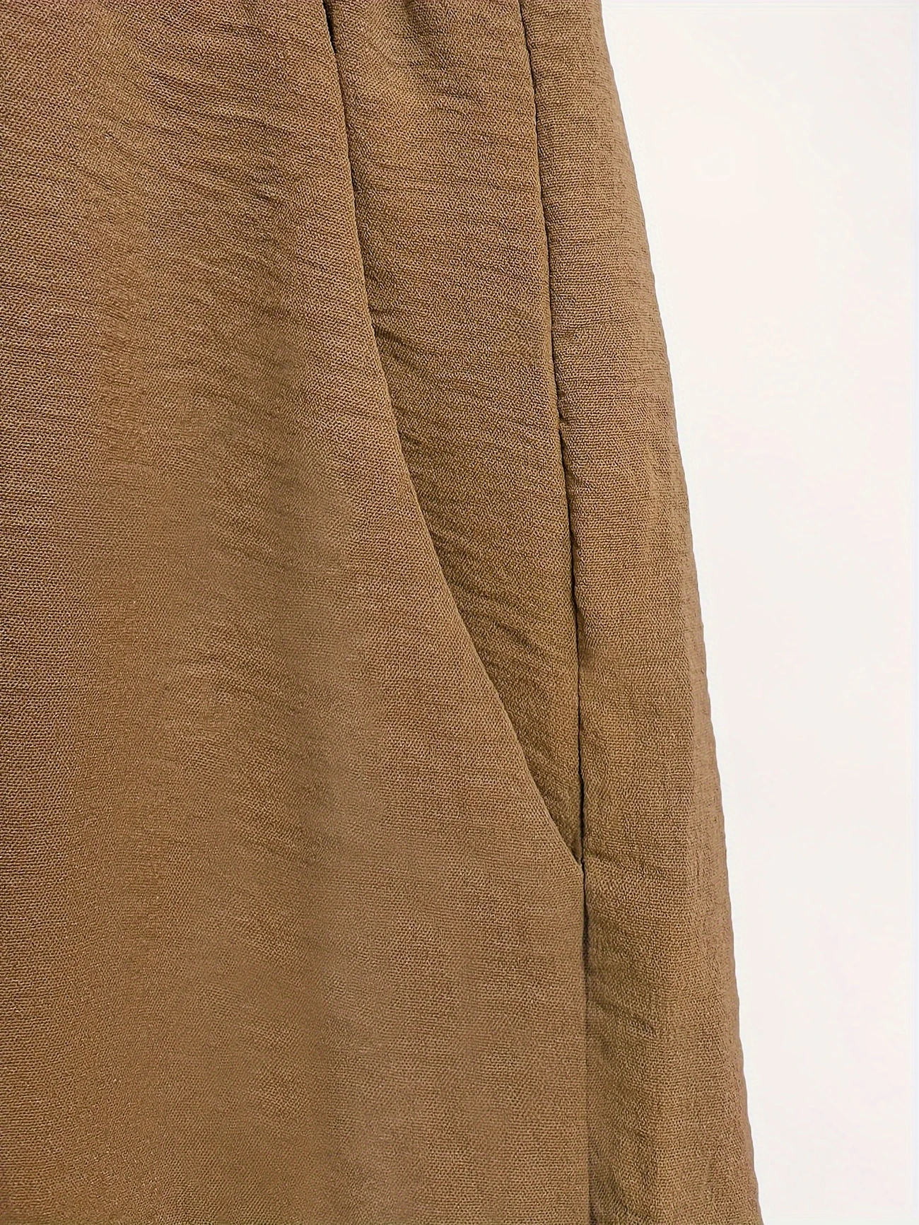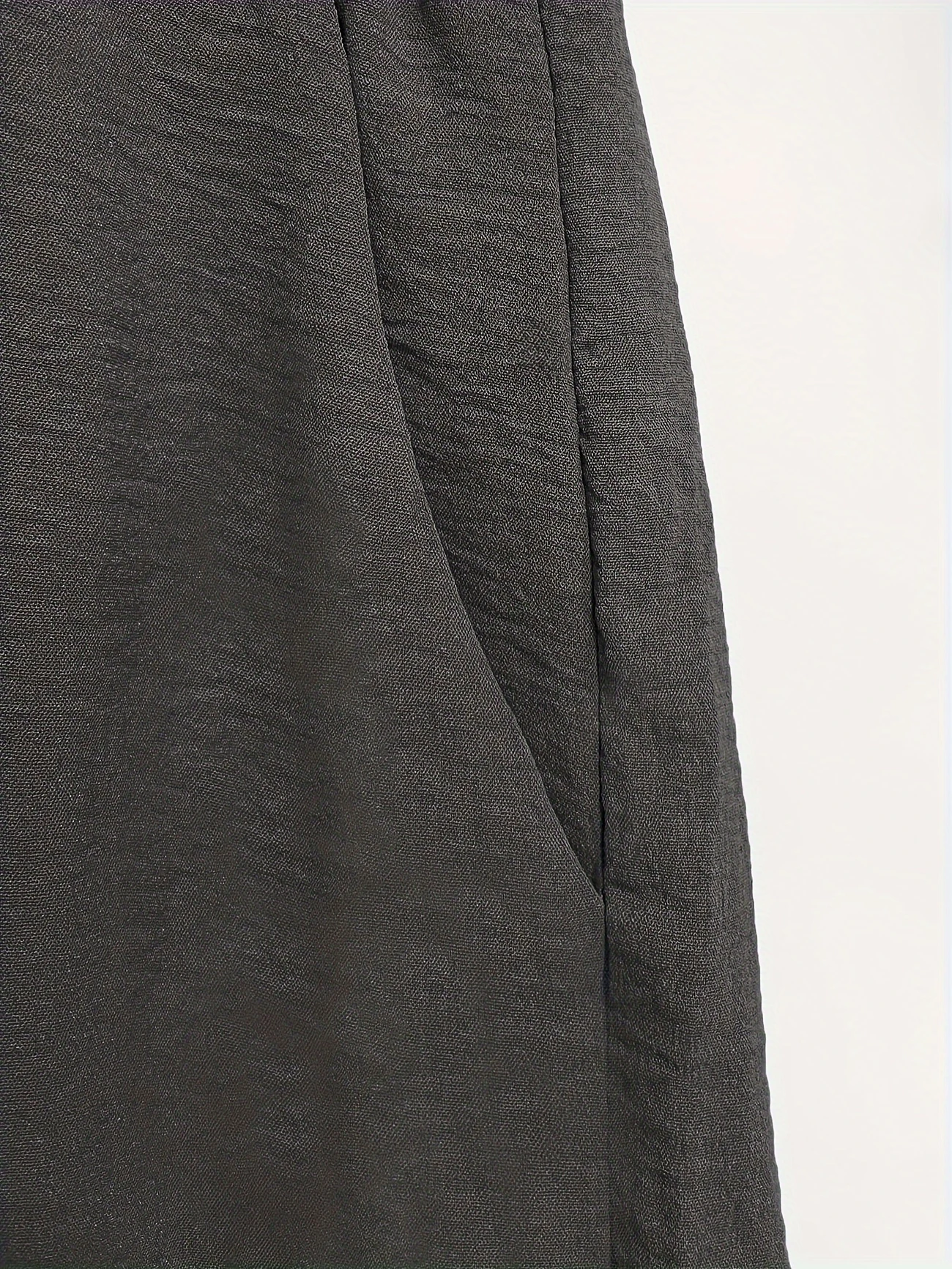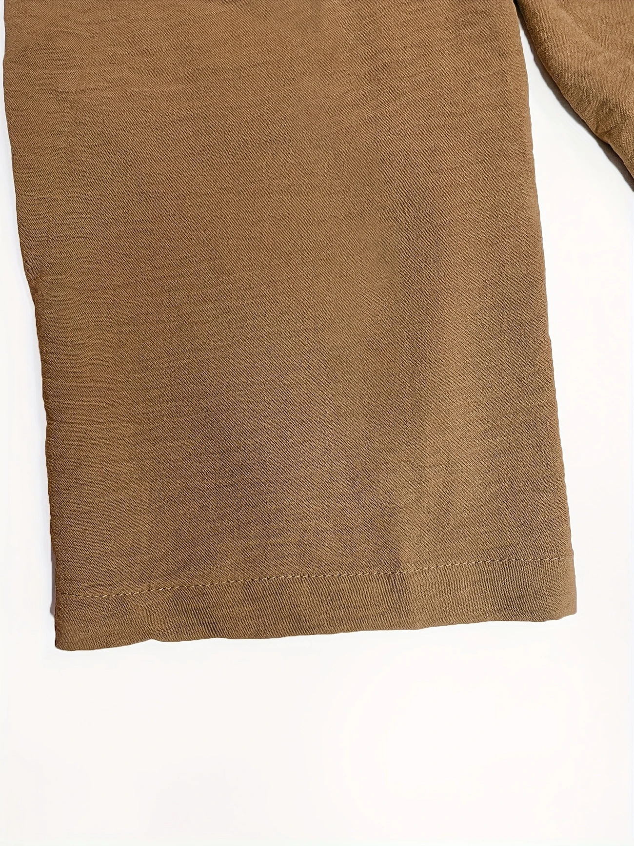 Ubranie to swobodny garnitur. Góra to okrągły dekolt o luźnym kroju. Rękawy są średniej długości i można je podwinąć, dodając luzu. Dół to szerokie spodnie, które są również luźne i dobrze się układają. Materiał ubrania ma wyjątkową fakturę, a styl jest prosty i obszerny, ma tendencję do bycia swobodnym i wygodnym. Nadaje się na codzienne podróże, zakupy i inne okazje.