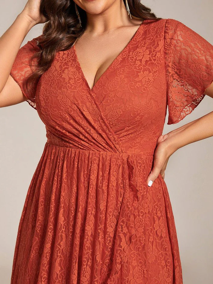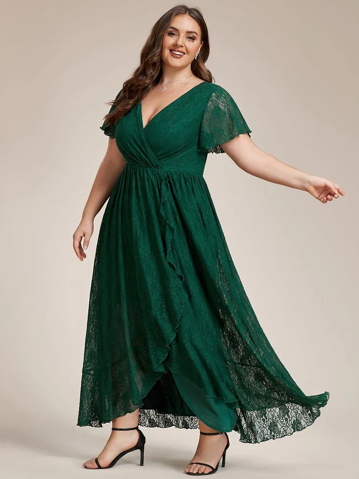 💎 LIMITOWANA EDYCJA! Suknia wieczorowa z koronkowymi detalami *Krótki rękaw + zwiewne marszczenia | TYLKO DZIŚ -25%* "Perfekcyjne dopasowanie dla każdej sylwetki!"