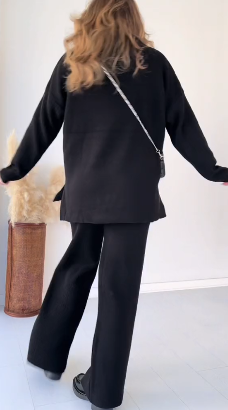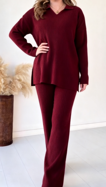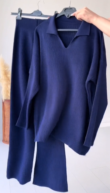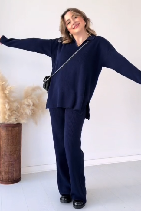 Damski garnitur casualowy z klapami, długimi rękawami i teksturowaną tkaniną