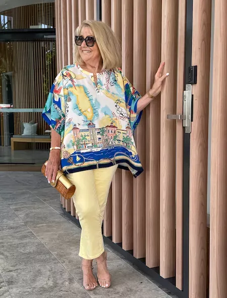 For day or evening, our new Chiffon Paisley Poncho has vibrant seasonal style. This design features a warm paisley print on lightweight woven fabric, best worn with a Microfiber Tank underneath. Dress it down with jeggings on casual days, or dress it up with pants for more upscale affairs.