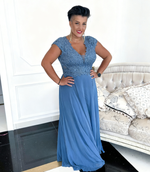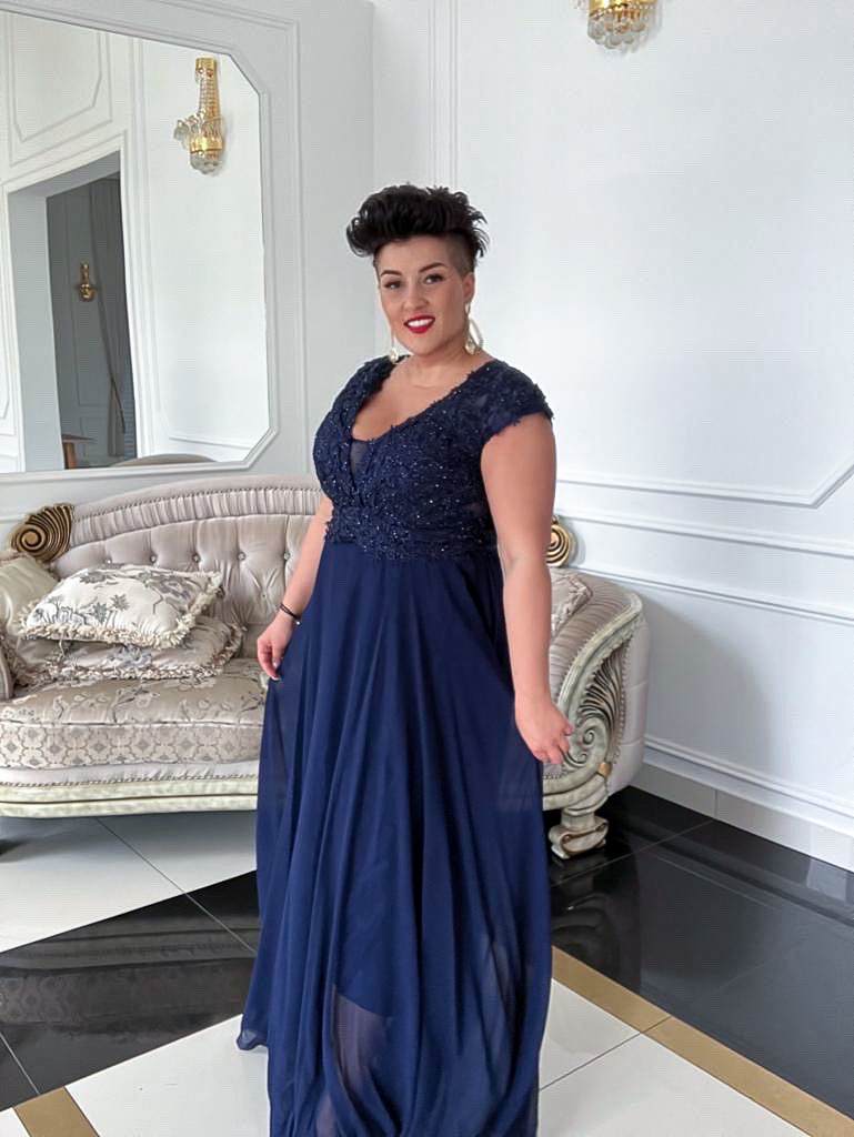 Piękna, nietuzinkowa sukienka, odpowiednia na różne okazje. Góra dobrze dopasowana, genialnie podkreśla kobiece kształty.