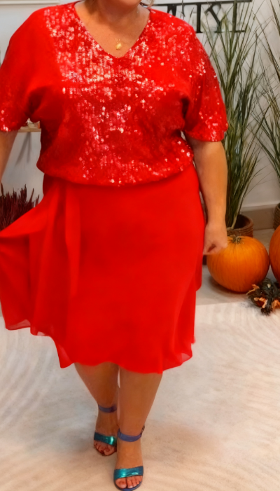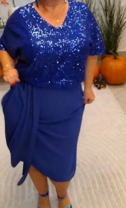 💃Sukienka z cekinami i dekoltem w serek, dopasowana