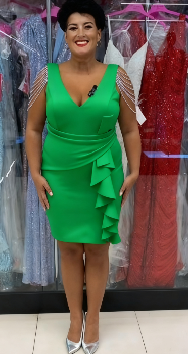 🌸2025 Sukienka koktajlowa z dekoltem w serek i stylowymi falbankami po bokach