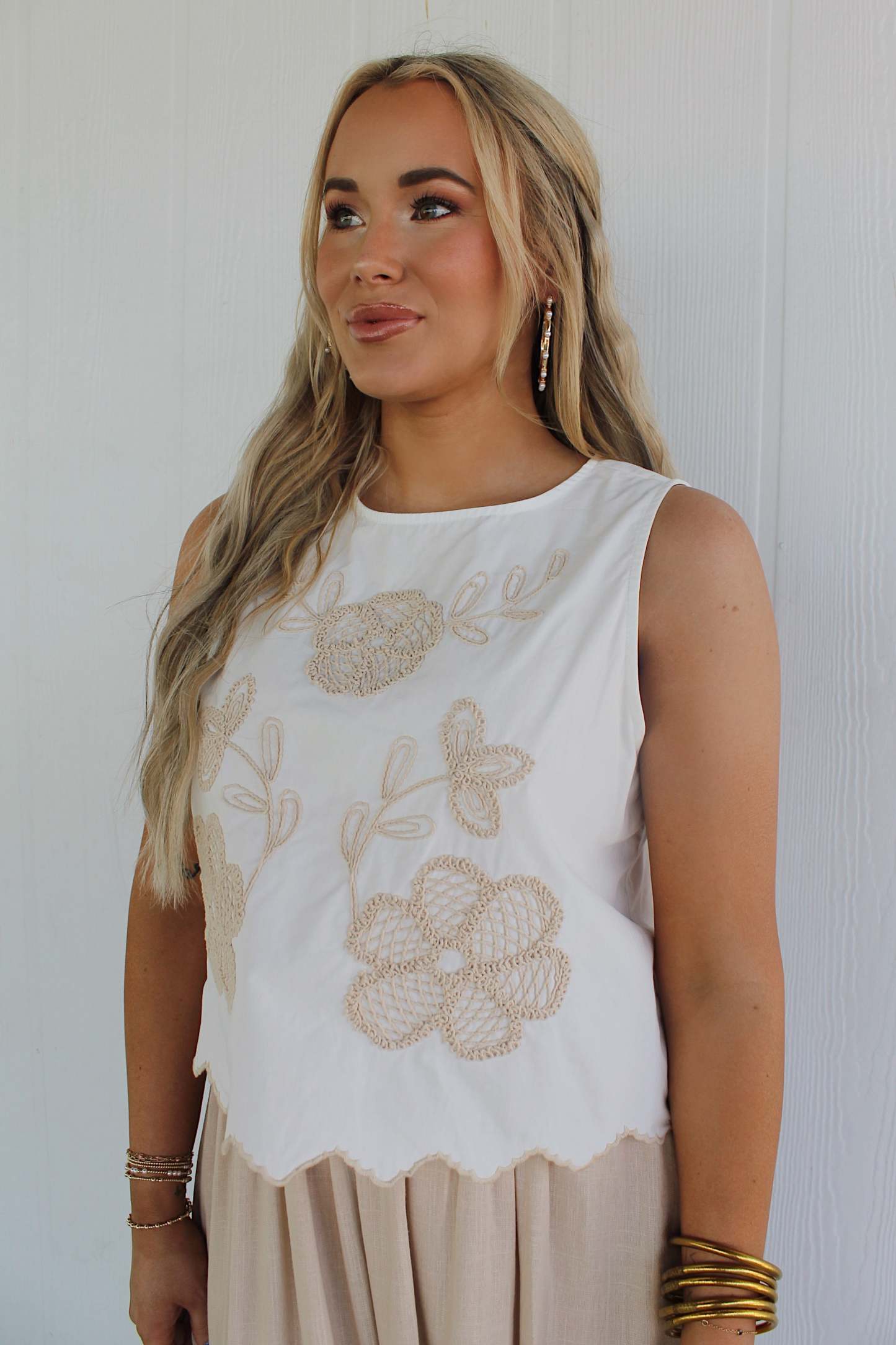 Get ready for some serious summer vibes with the Elina embroidered midi dress. This off white and ecru colored linen dress features delicate embroidery, giving it a unique and playful touch. Perfect for any occasion, it's the perfect go-to for those who don't take themselves too seriously.