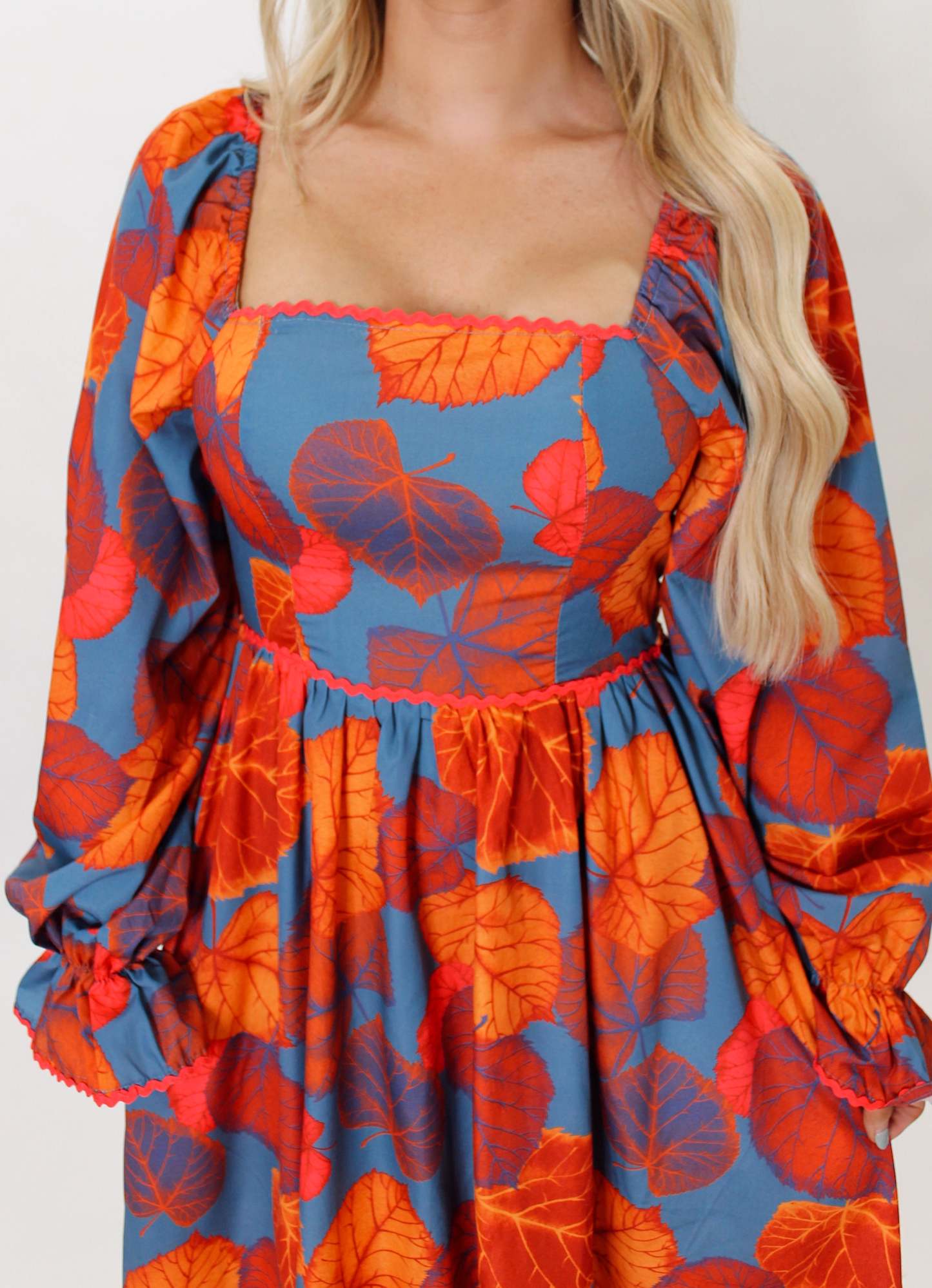 Get ready for some Fall feels with our playful orange multi midi dress! This dress is adorned with a fun fall print that is sure to make a statement. Perfect for those cooler days, this dress will keep you stylish and comfortable.