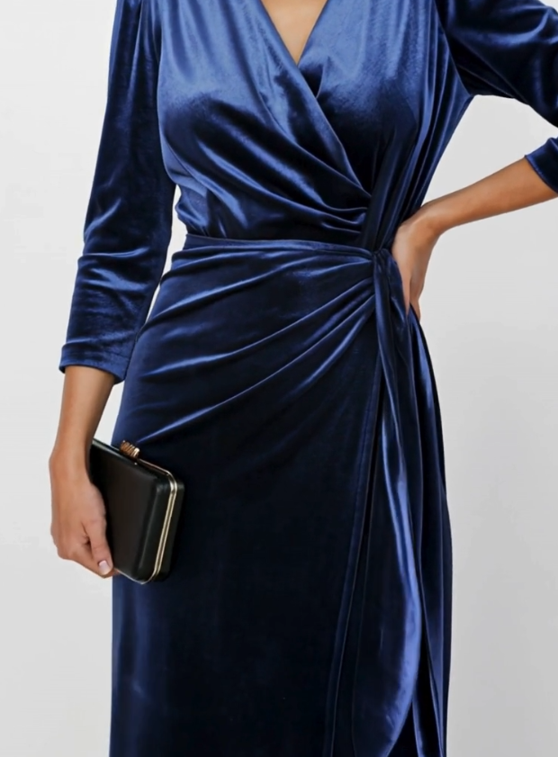 Sukienka z dekoltem w serek, plisowany fason, długie rękawy