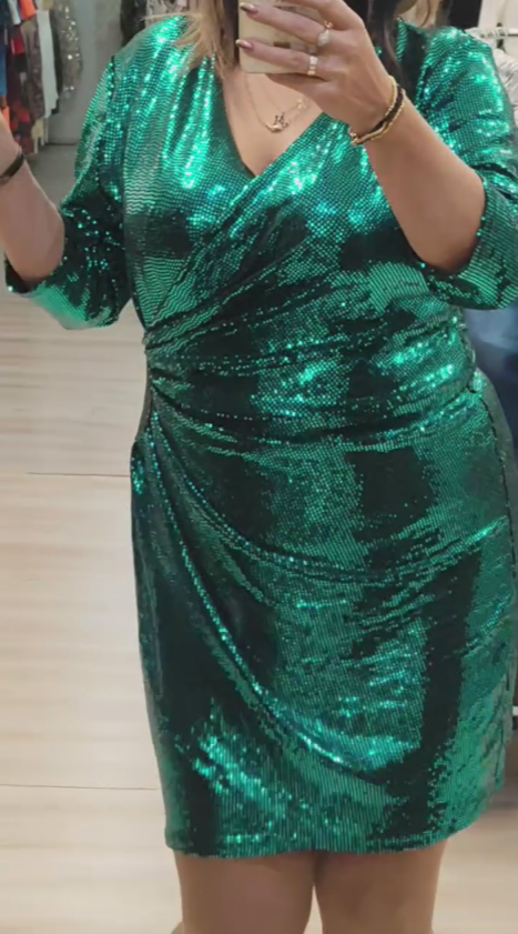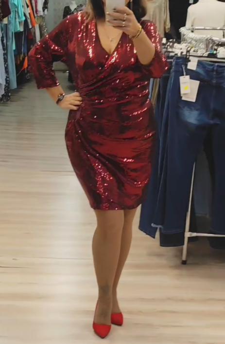 Ta luksusowa, cekinowa sukienka to idealny wybór na firmowe imprezy,