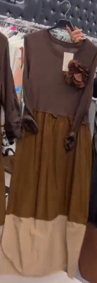 Nasza suknia to prawdziwy skarb w Twojej garderobie. Czarny materiał z brązowymi, płynnymi
