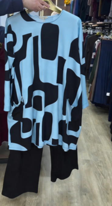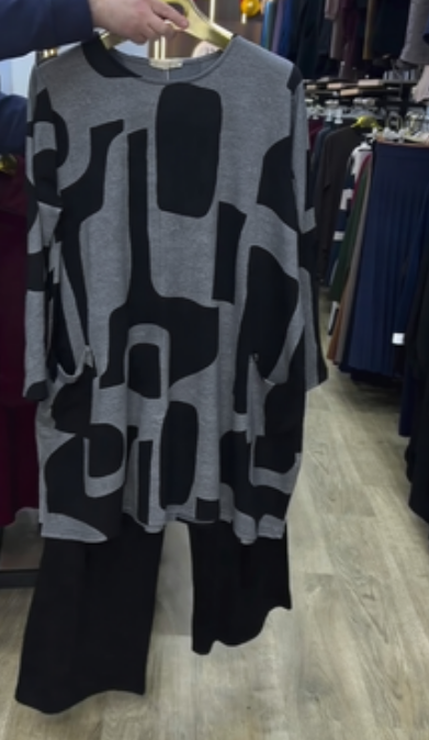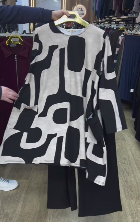 Stylowy zestaw czarno-biały z abstrakcyjnym wzorem: elegancki wybór na codzienne wyjścia oraz spotkania towarzyskie