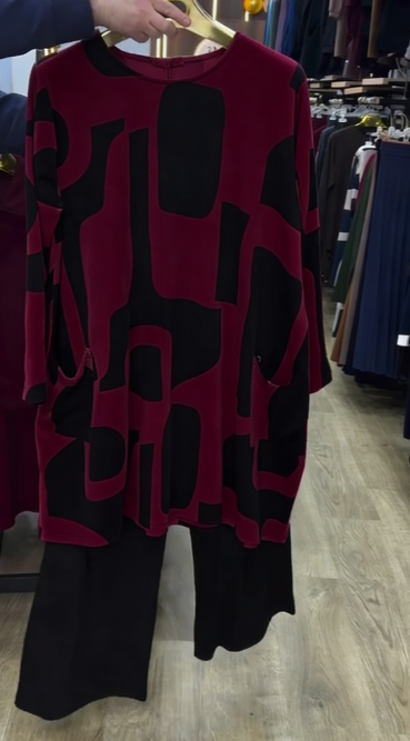 - Abstrakcyjny wzór oraz kieszenie: Łączą elegancję z praktycznością, nadając stylizacji wyrazisty i funkcjonalny charakter.