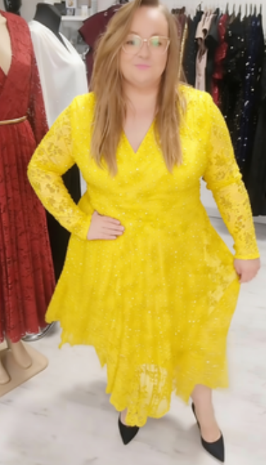 Elegancka sukienka maxi plus size z koronką i błyskiem: luksusowy styl na uroczystości
