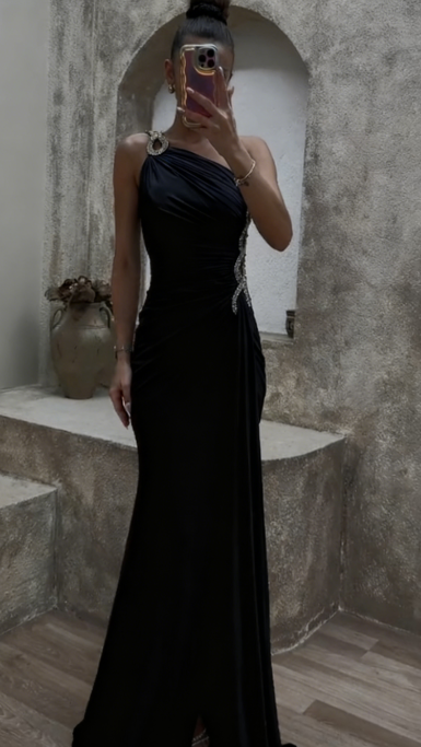 Sukienka z rozcięciem na jedno ramię, zdobiona cekinami