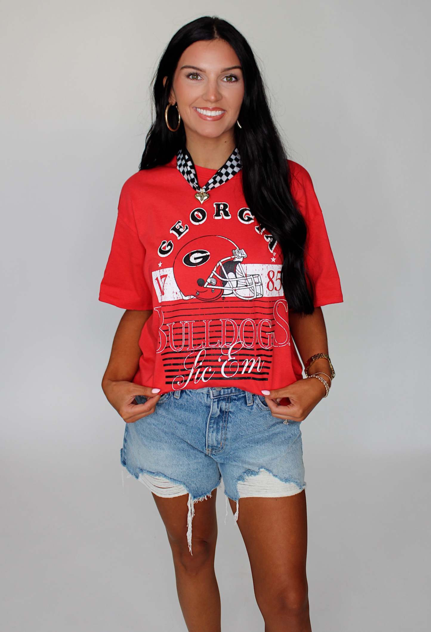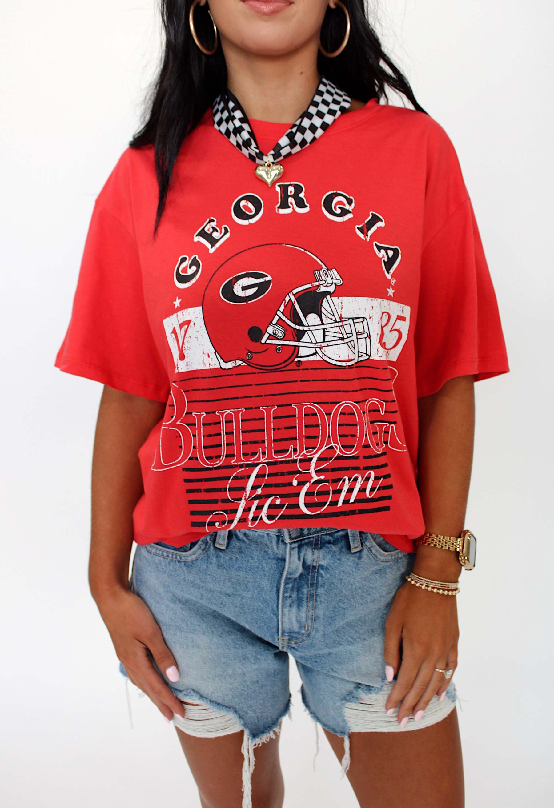 Get game day ready with the Stewart Simmons Distressed Boyfriend Tee! This vintage-inspired tee offers a relaxed fit and worn-in look that’s perfect for cheering on your team in style. Soft, comfy, and effortlessly cool, it’s your new go-to for casual days and spirited celebrations.