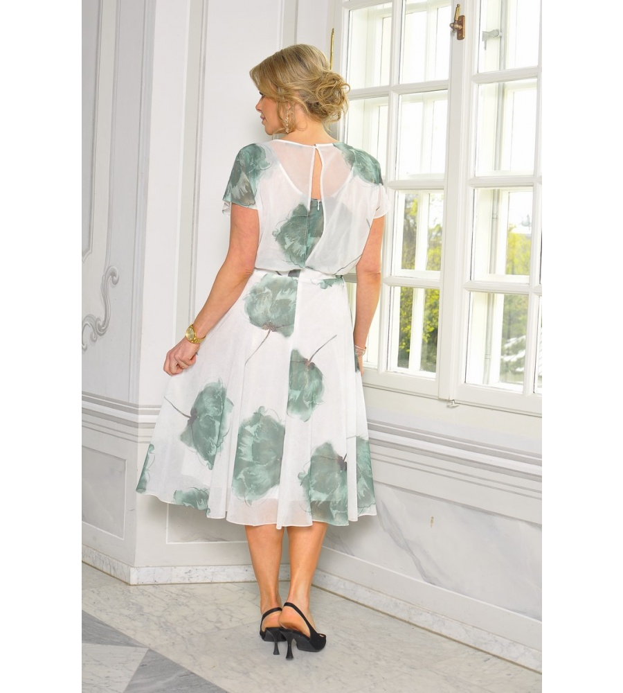 Delikatna, a zarazem elegancka sukienka midi w odcieniu pudrowego różu to idealny wybór na wyjątkowe okazje. Złote detale subtelnie podkreślają kobiecy charakter kreacji, dodając jej blasku i szyku. W talii znajduje się ozdobny złoty łańcuszek, który pięknie zaznacza sylwetkę i dodaje całości wyrafinowanego akcentu. Idealna na wesele, uroczyste wyjście czy romantyczną kolację.
