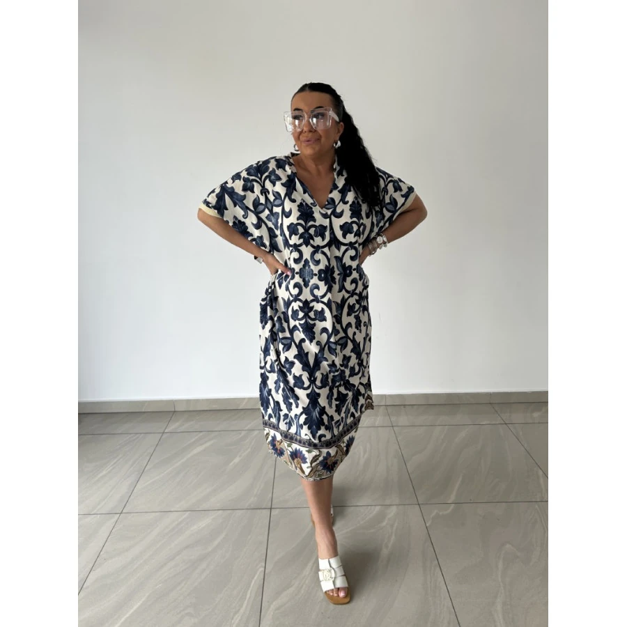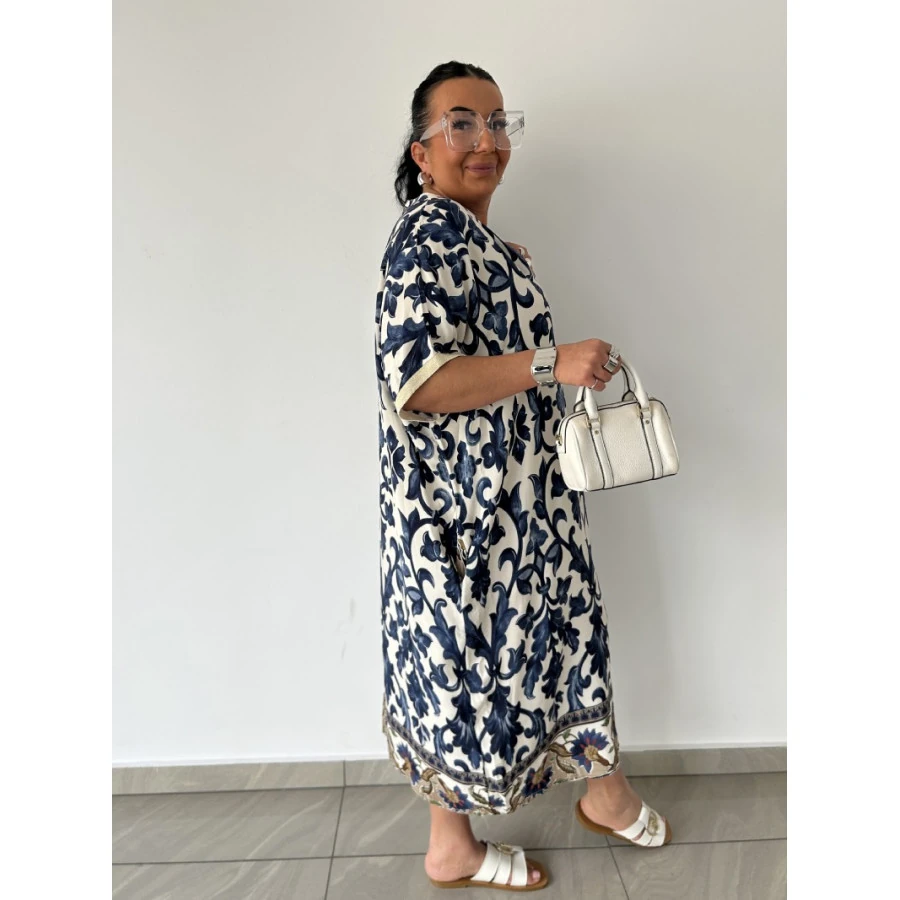 Sukienka mega oversize w wakacyjnych wzorach to propozycja dla kobiet, które cenią swobodę, wygodę i wyrazisty styl. Luźny, przewiewny krój gwarantuje maksymalny komfort nawet w upalne dni, a barwne, letnie printy przyciągają wzrok i nadają charakteru każdej stylizacji. Model świetnie układa się na różnych typach sylwetek, nie opina ciała i pozwala poczuć się swobodnie i jednocześnie kobieco. Idealny na wakacje, spacery, plażę czy codzienne wyjścia. To ubranie, które daje Ci luz, lekkość i pełną wolność ruchu – bez rezygnacji z modnego wyglądu.